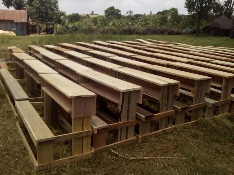 Met het geld van de deurcollecte in Andel hebben we deze schoolbanken in Kenia laten maken door de timmerman uit de buurt. Nu kunnen de kinderen met iets minder tegelijk in een bank de lessen volgen. De banken zijn gemaakt op het terrein van de school.