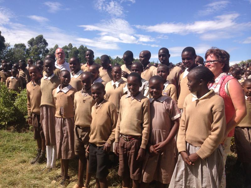 In Kenia wel een prachtig en ruim grasveld, maar helemaal kaal. Een aantal scholen werden gebeld, PowerPoint presentaties getoond aan de leerkrachten en kinderen en al snel waren een aantal scholen erg enthousiast om de kinderen in Kenia te gaan helpen.